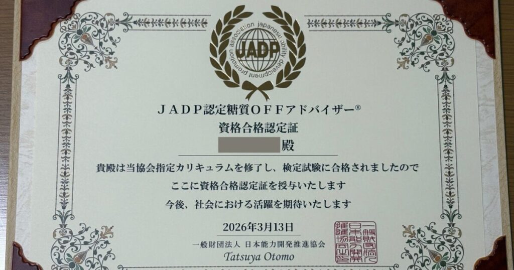 また、低糖質の知識をより体系的に学ぶため、糖質オフアドバイザーの資格も取得しました。